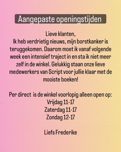 Is het boek dat je bij ons koopt een cadeautje? Dan maken we er ook écht een mooi cadeau van. Over cadeautjes gesproken: er is bij SCRIPT nog veel meer te koop voor boekenfans. Van leuke leeslampjes tot opvallende boekensteunen en van fijne notebooks tot mooie booknooks We ontdekken steeds nieuwe boekcadeautjes, dus don't be a stranger!